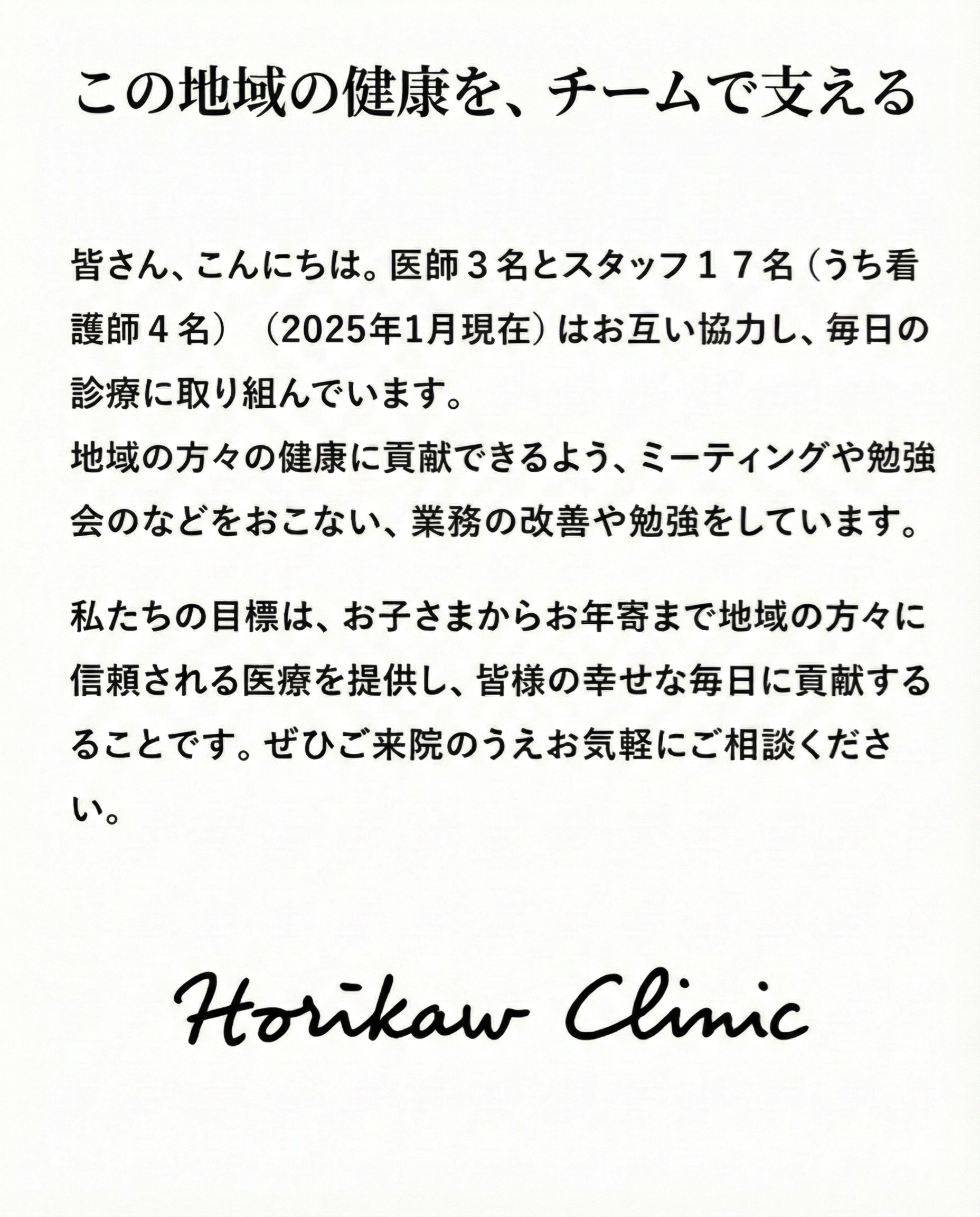 Horikawa Clinic 医療法人堀川医院は地域の皆様の健康を守ります。